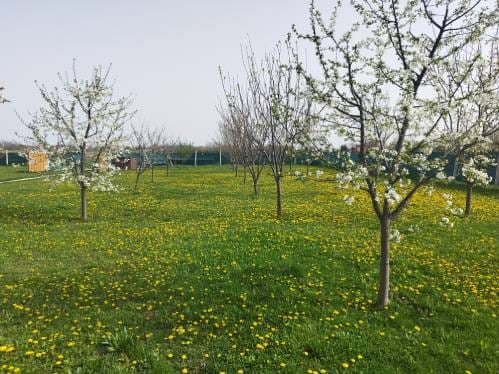 Ja, és mindeközben gyümölcsfákat is telepítettünk, mindenfélét: almát, körtét, sárgabarackot, őszibarackot, meggyet, cseresznyét, szilvát, naspolyát. Már harmadik éve szüretelünk róluk, lekvár is készült a termésekből. Nagy bánatunkra a 3 diófáról viszont az utóbbi években csak pár szemet tudtunk elfogyasztani, a dióburok fúró légy kártétele miatt, de permetezni nem is akarjuk a fákat és nem is lehetne, mert a három fából kettő óriásira nőtt.
