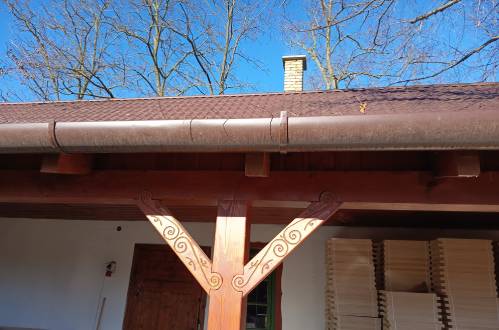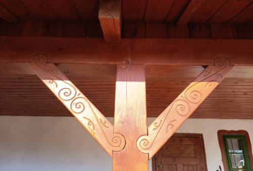 A finom részleteket egy nagyon kedves asztalos barátunk készítette, az oszlopok felső részén lévő támasztókat amikbe gyönyörű mintát mart.